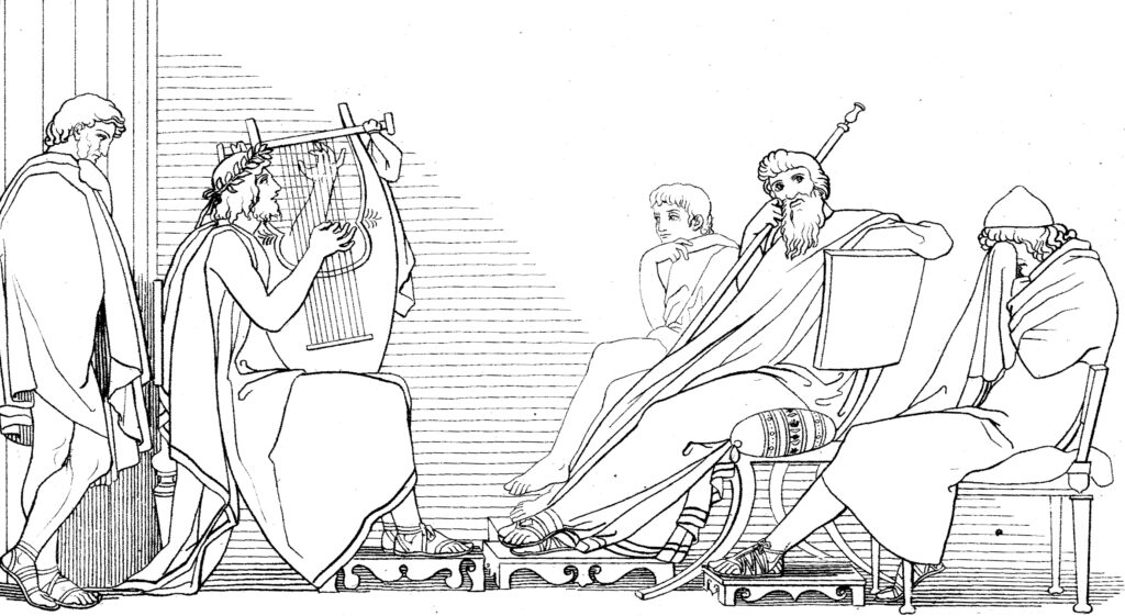 So geht es für Odysseus ja nicht allein darum, in einen Erzählwettstreit mit dem Sänger Demodokos zu treten und seinen Gastgebern seinerseits möglichst kurzweilig von seinem Leben nach der Zerstörung von Troja zu berichten. Denn während Alkinoos und seine Tochter Nausikaa ihren Gast gerne als Schwiegersohn und Gatten festhalten wollen, ist dieser vom Heimweh geplagt. Um ohne weitere Verzögerungen nach Hause zu kommen, benötigt der vom Zorn Poseidons verfolgte Odysseus jedoch das Geleit der Phäaken. Die Hilfe dieses Seefahrervolks verschafft sich der „Erfindungsreiche“ zu Anfang des 9. Gesangs mit einer ebenso anschaulichen wie kunstvoll gebauten Geschichte: Erzählend stilisiert er sich zum schuldlos leidenden Irrfahrer und erbarmungswürdigen Opfer „unzivilisierter“ Gestalten. Mittelbar fordert er seine Zuhörer damit auf, sich ihrerseits „zivilisiert“, das heißt anders als Polyphem und die anderen in seiner Erzählung auftretenden Barbaren zu verhalten, ihm zu helfen und die Geschichte seiner Irrfahrt nunmehr zu einem guten Ende zu bringen.