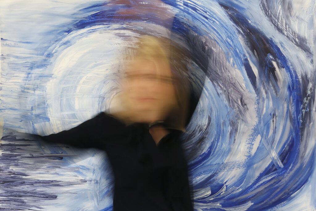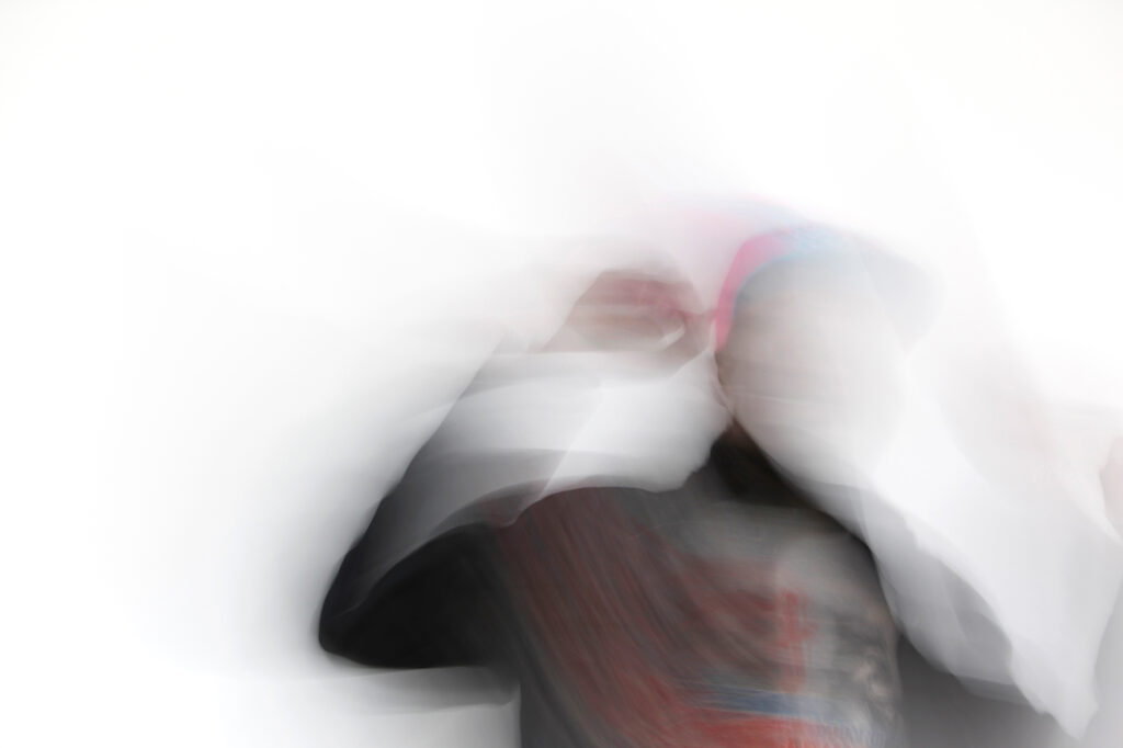 Anfangs liegt mein Fokus auf einem experimentell spielerischen Ansatz. Die Klient:innen fotografieren sich gegenseitig. Es entstehen Portraits mit langen Belichtungszeiten. Oft trifft diese Methode zunächst auf Verwunderung, da alle Bilder unscharf werden.