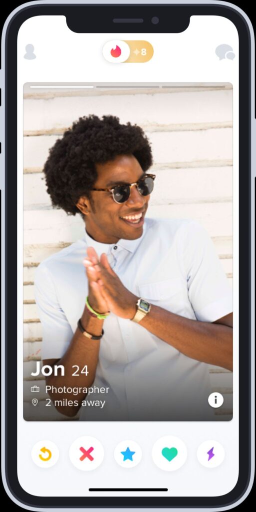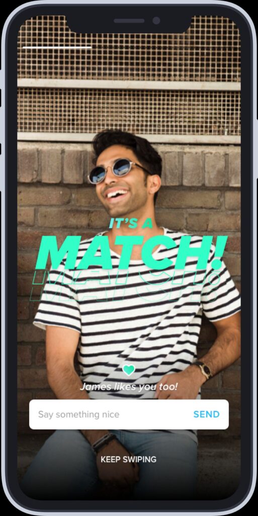 Die Funktionsweise ist denkbar intuitiv. Die Informationen über unser virtuelles Gegenüber werden uns primär über Bilder vermittelt, die uns in Form eines virtuellen Stapels präsentiert werden. Durch eine simple Wischbewegung können wir die uns vorgeschlagenen Nutzenden nach rechts wischen, um so unser Interesse zu bekunden, oder nach links wischen, um den Vorschlag abzulehnen. Hier setzen Tinder und Co. auf ein sogenanntes doppeltes Opt-in-Verfahren. Zuerst werden uns nur Nutzende angezeigt, die unseren Interessen entsprechen, sei es die relative Entfernung, das Geschlecht oder die sexuelle Orientierung. Auf der zweiten Ebene müssen beide Nutzende nach rechts gewischt haben. Im Falle eines solchen Treffers, dem Match, können beide Nutzende per Chat miteinander kommunizieren.