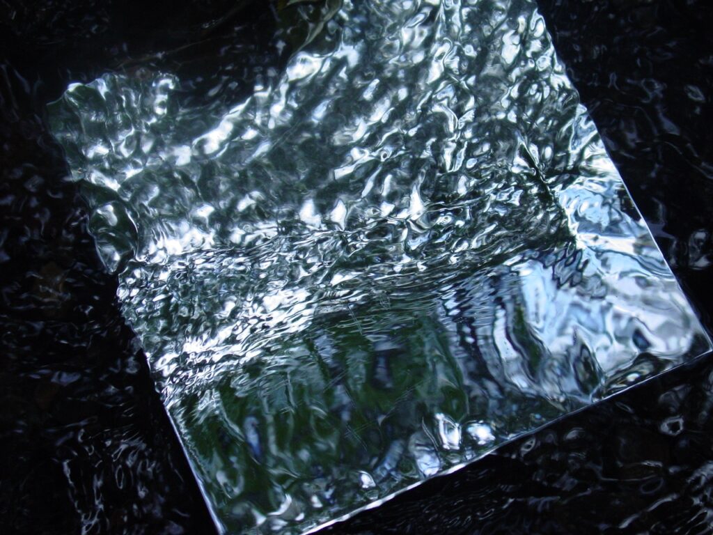 Das indes ist eigentlich nicht möglich: Fließendes Wasser ändert ständig die Form, ist immer wieder anders. Nun wird experimentiert, indem das Fließen mit Spiegelkacheln, die in das Wasser gelegt werden, sichtbar gemacht und fotografiert wird. Auch die Untersuchung selbst sowie die gefundenen Tiere und das Ergebnis werden fotografiert.