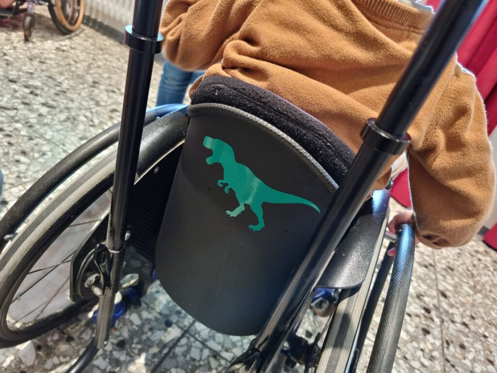 Seit 2021 findet fast jährlich ein inklusives Workshop-Angebot statt, das sich an Menschen mit Osteoporose sowie deren Geschwister und Freund:innen richtet. Die Teilnehmenden gestalten etwa individuelle T-Shirts, entwerfen Aufkleber für Rollstühle und sammeln dabei erste Erfahrungen im Programmieren und digitalen Gestalten. Im Vordergrund steht das gemeinsame kreative Arbeiten, bei dem technische Fähigkeiten genutzt wurden, um den eigenen Alltag und persönliche Hilfsmittel individuell aufzuwerten.